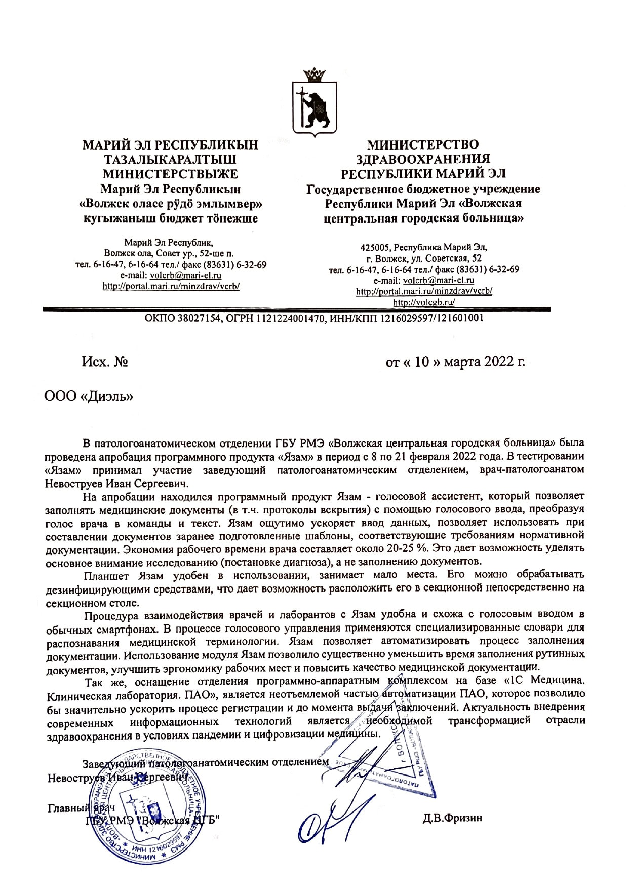 Примером реализации интегрированного комплекса для Digital Pathology (цифровые рабочие места для врачей-патологоанатомов) может служить внедрение информационной системы ЯЗАМ.