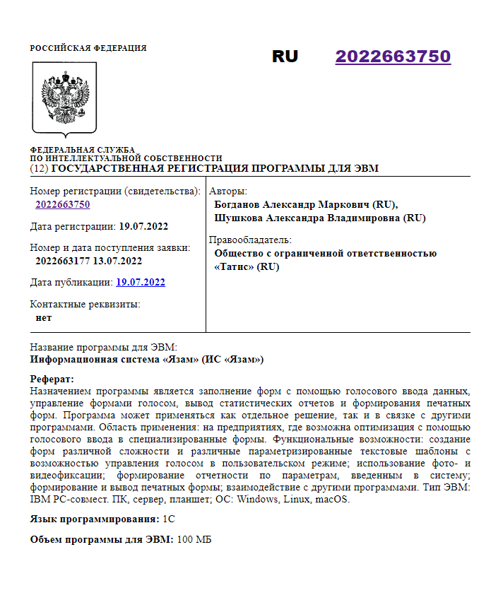 ИС ЯЗАМ включен в Едином реестре российских программ №23011 от 28.06.2024